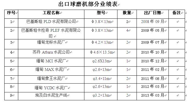 磨機(jī)部分業(yè)績表